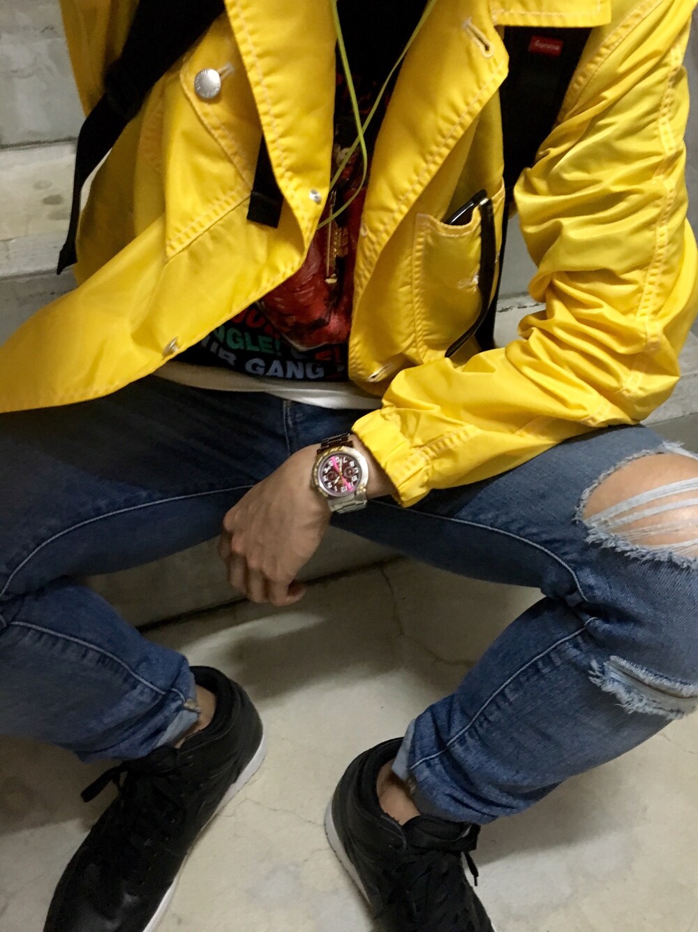 春っぽくアウターに黄色持ってきてみたけど黄色合わせるの難しい😂 これをうまく着こなせるようにしよ🔥 インナーはレイヤード😊 あぁーお金ほしーなー👻👻