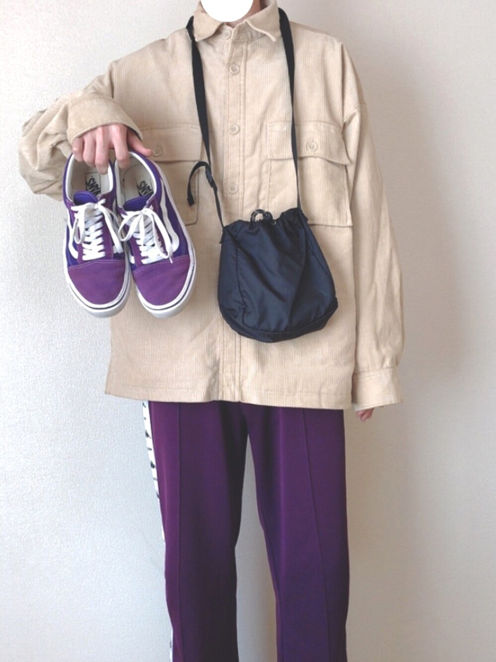 久しぶり投稿。笑 CPOコーデュロイジャケット 紫のカッパのパンツ 紫のvans これからいっぱいあげてくよ???