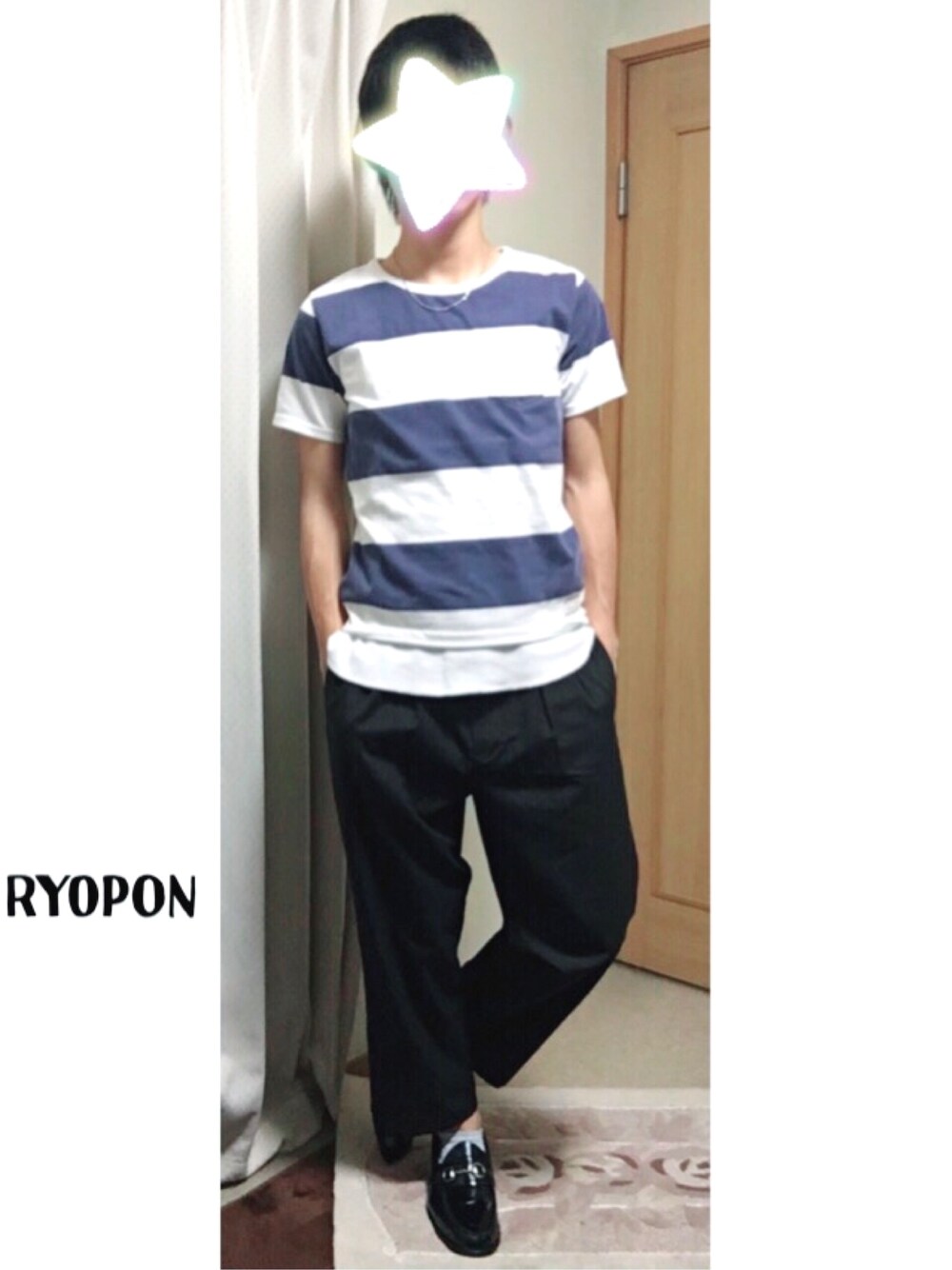 りょうぽんのTシャツ/カットソー「ポケット付きボーダークルーネックTee」を使ったコーディネート
