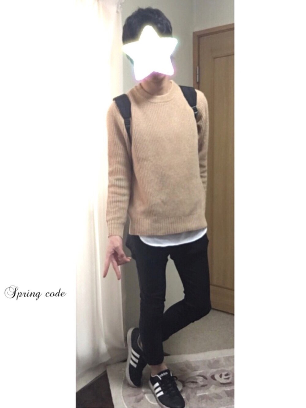 今日からGWの方もいると思いますがGW中は天気も良さそうで最高ですね(๑╹ω╹๑ ) 残念ながら自分はGW関係なくお仕事ですが、同じだよって人は一緒に頑張りましょ♪ 後ろポケットにお財布入れてるのでボコボコしてますが気にしないでください! セーター M パンツ M シューズ 7.5
