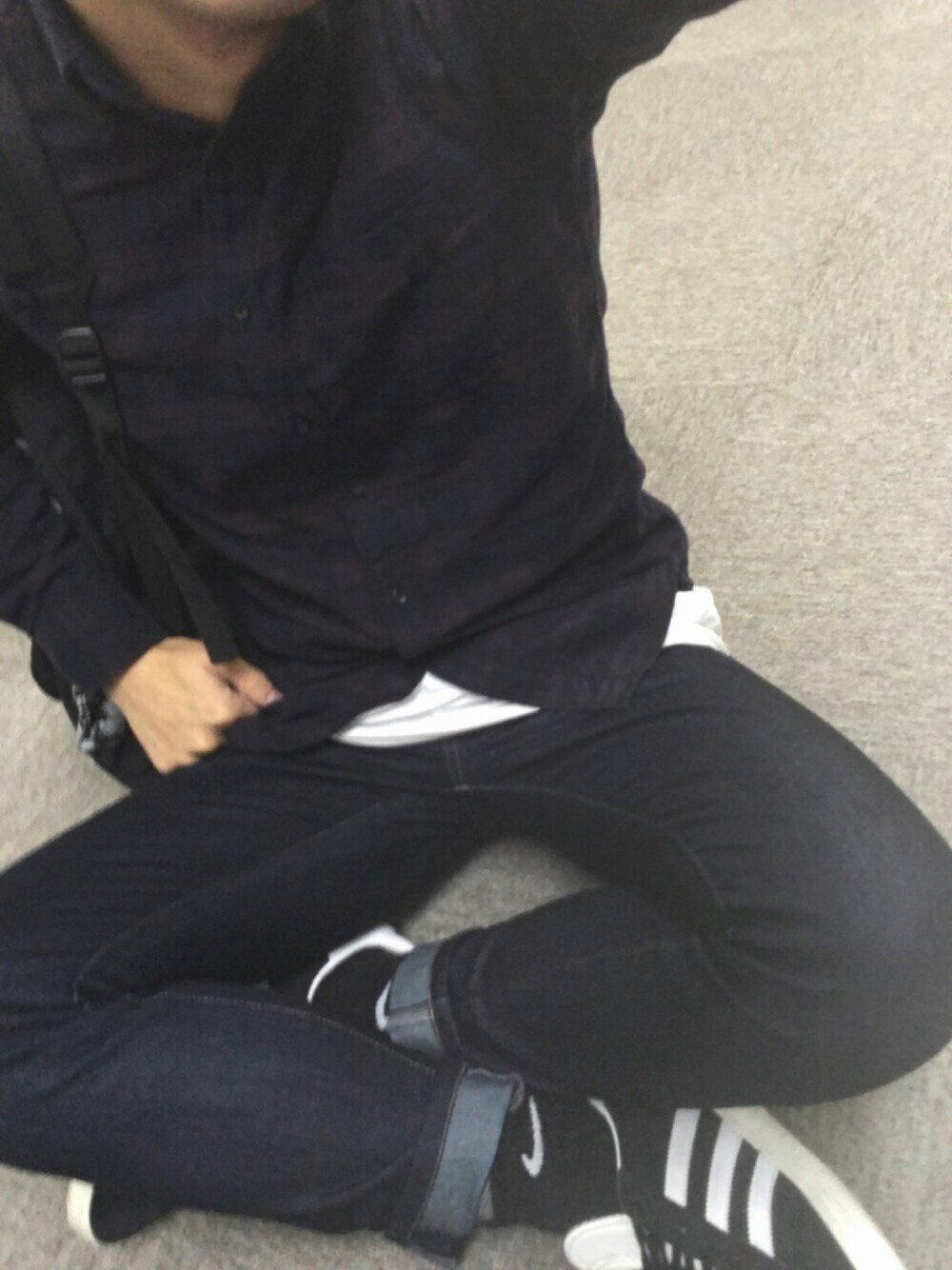 今日はものっすごくチープなコーデ たぶん上下で1万円いかないぐらい インナーのH&Mロング丈Tは夏に600円で購入しました笑 ナイキのソックスにアディダスのスニーカー履いてスポーツブランドで喧嘩させてみました