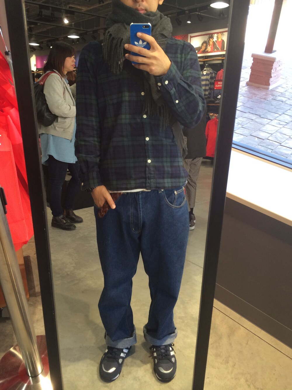 最近気づいた、デニムしかはいてないことに、笑 adidasのスニーカーはきやすい。\(^o^)/ シャツ#無印良品 デニム#old stussy