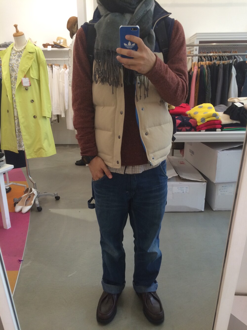 大阪旅行。 危うく遅刻しそうになりました、、 ニット#不明 シャツ#ラルフローレン デニム#BLUEBLUE