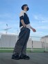 AIVERのモノクロシャツとデニムの組み合わせ シンプルだけど存在感あって好き