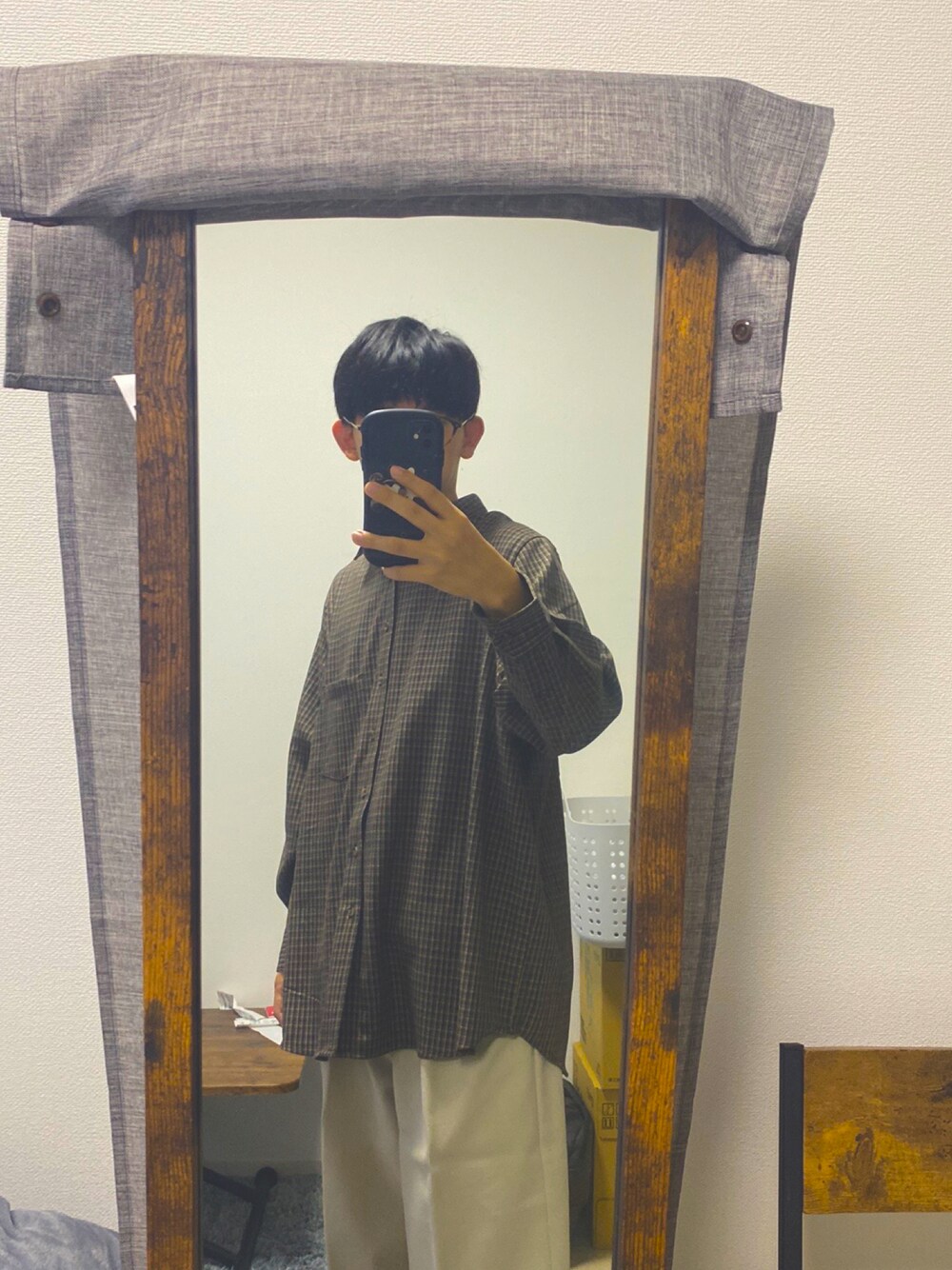 たるとのシャツ/ブラウス「loose old check over shirt/ルーズオールドチェックオーバーシャツ」を使ったコーディネート