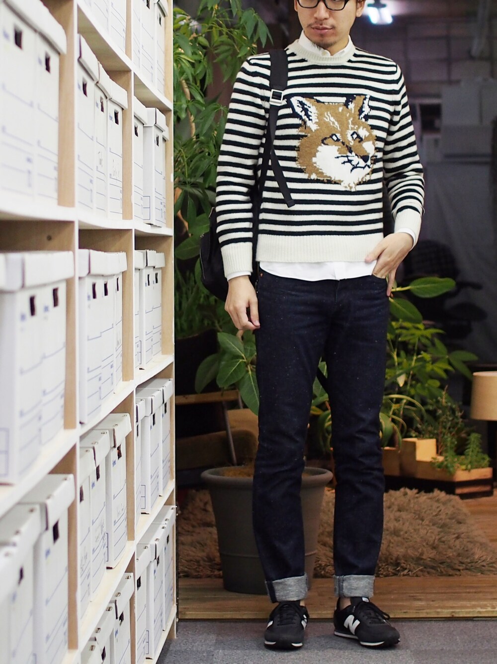 毎シーズンお決まりのキツネ顔ニット 今年はシマシマです