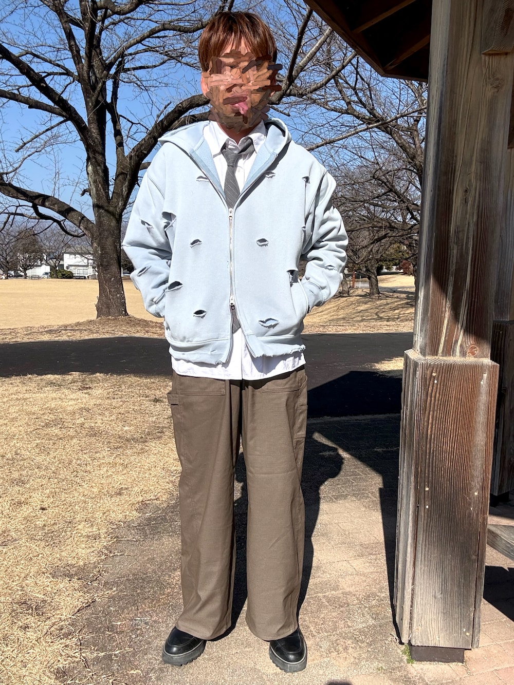 パーカーを切ったり日光に当ててダメージ加工してみました!