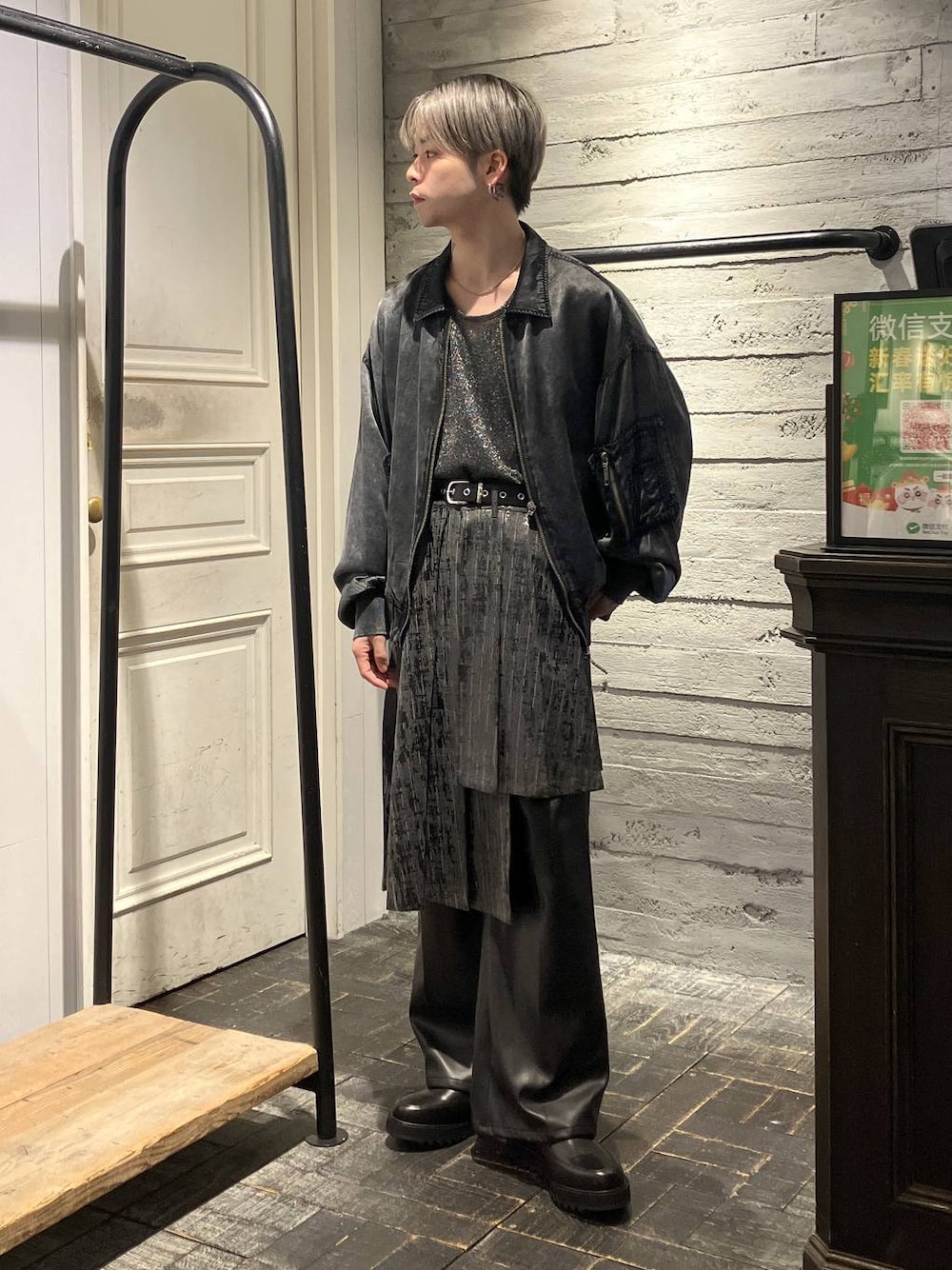 【staffboard毎日更新中】 【TOPS】 ▶︎カコウフライトジャケット トレンド感のある製品加工を施したデザインでヴィンテージライクな雰囲気に。 落ち着いた色味と無駄な装飾を減らす事でカジュアルになりすぎずモードな印象に。 サイズ:フリー 【PANTS】 ▶︎レザーワイドパンツ 幅を広く持ったフレアシルエットのレザーパンツ! センタープレスを入れ、ワイドなシルエットではありますがスッキリした印象に。 サイズ:S ※全着用商品下記に記載してます!