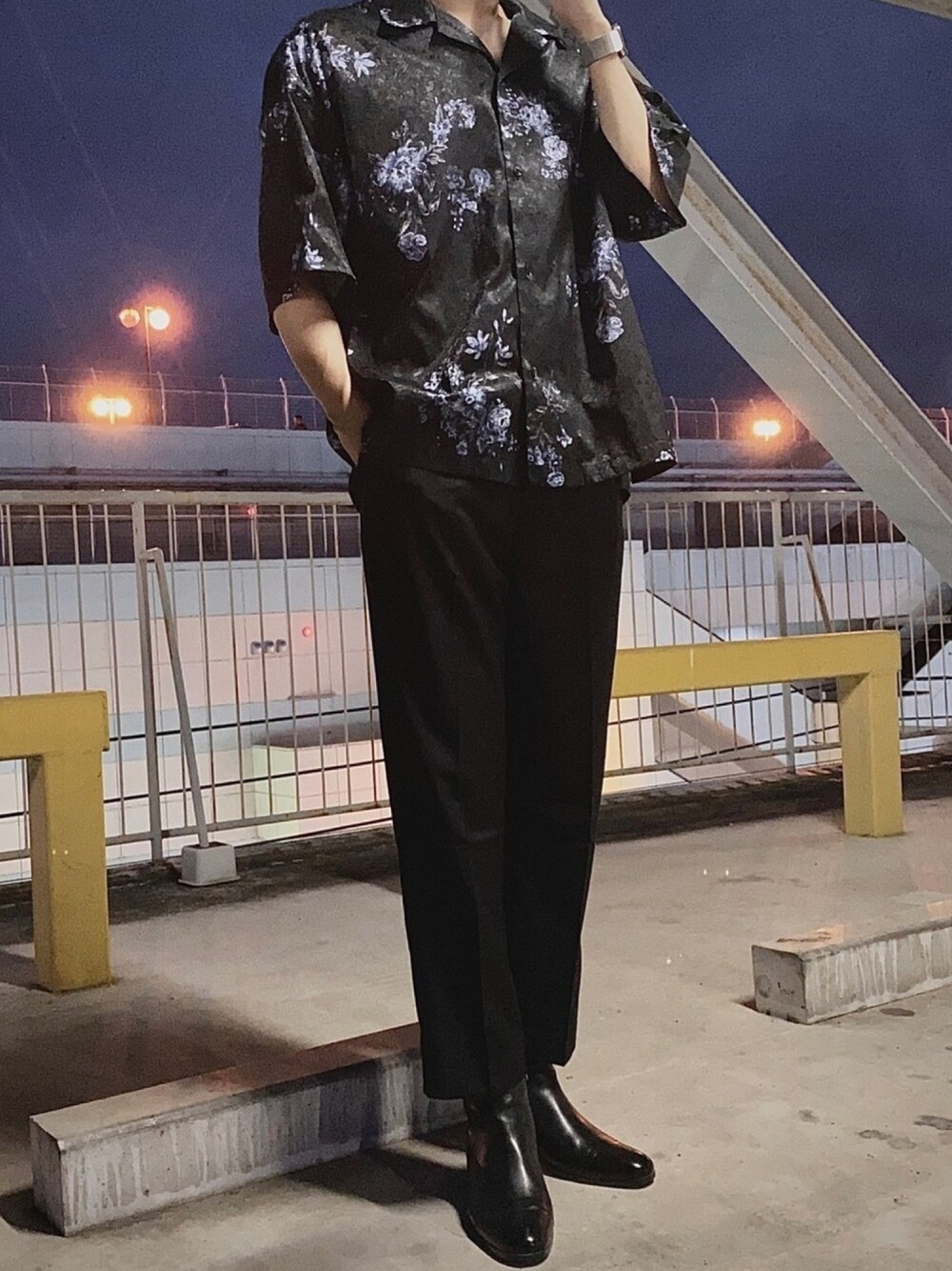 おはようございます! りょうでございます〜🦥 下は上品に。上で遊ばせるオールブラック。 これ以外に特に言うことないんですけど、去年から使ってるこのシャツが最強すぎる!!