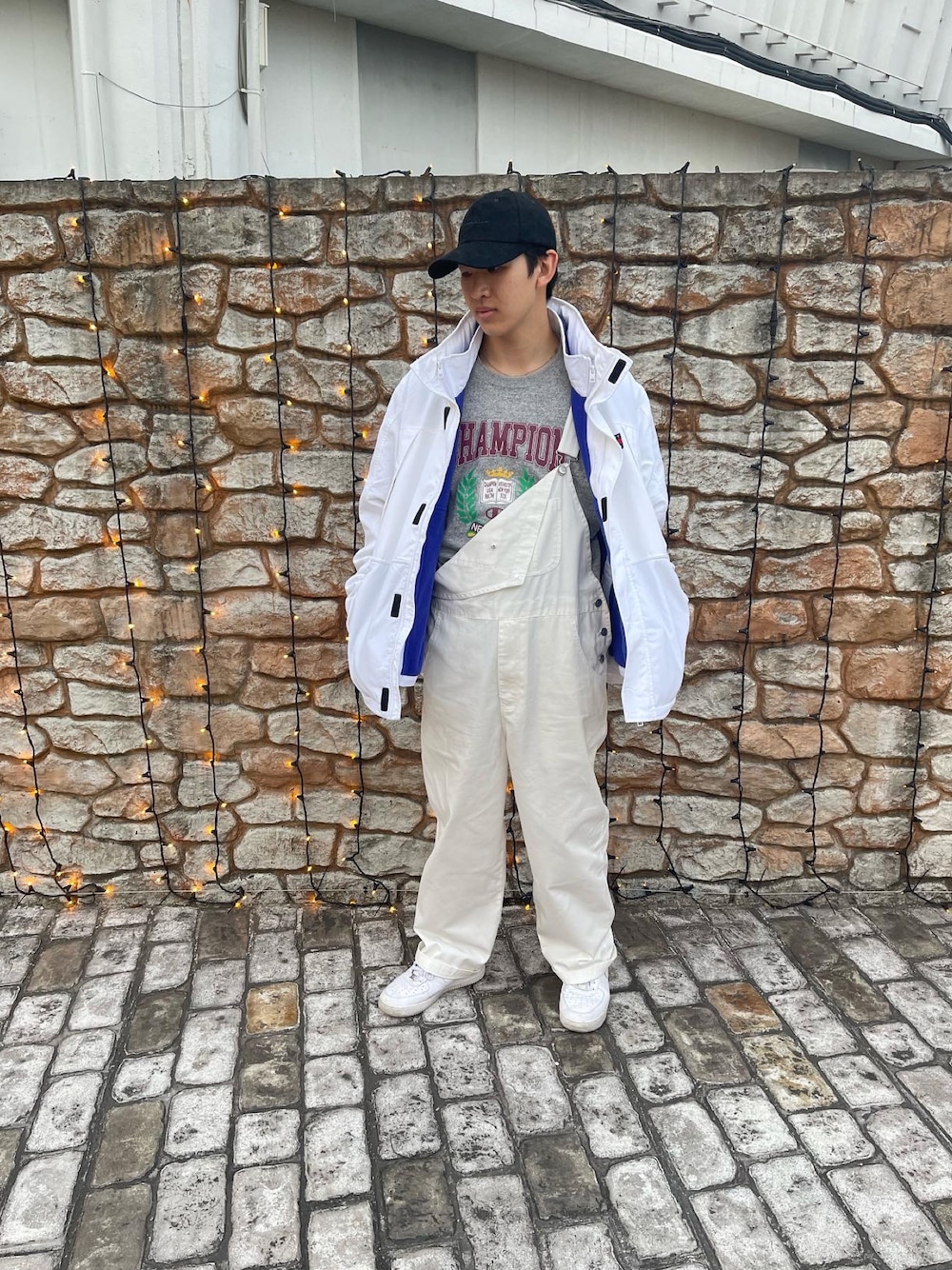 なかなか白いオーバーオールを来てる人少ないですよね 中のロンTは本当は黒が良かったですが見当たらず残念でした
