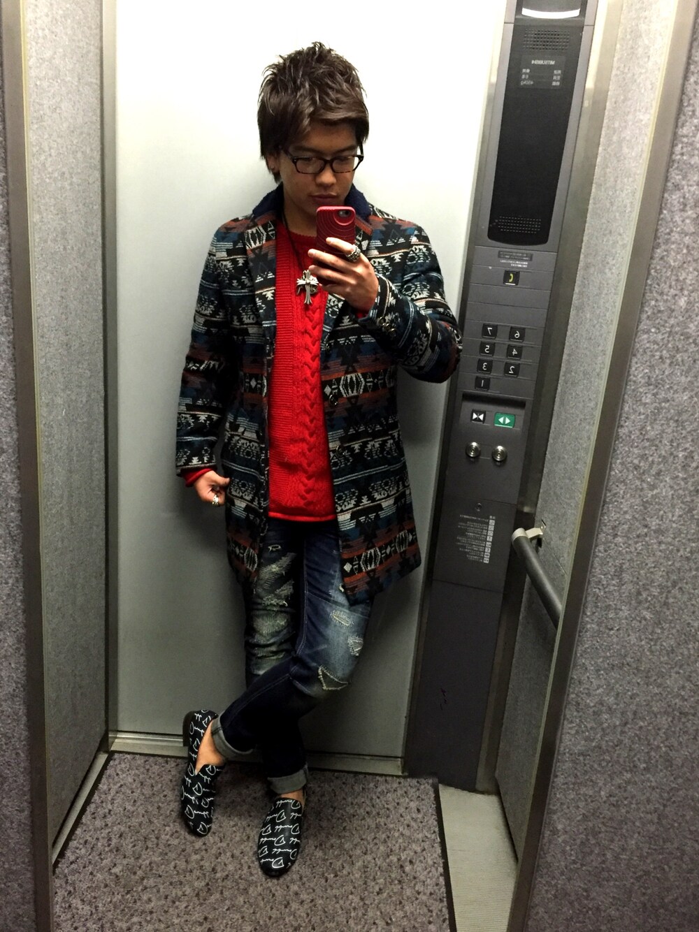 GMです🙌 - 今日はネイティヴ柄のチェスターコートを軸に全体の色のバランスを意識してコーデ組んでみました😎 - チェスターコートは見えないけど襟元がボアの切り返しになってってるところも好きなポイントの1つ💯👌 - 今日も頑張るぞー!