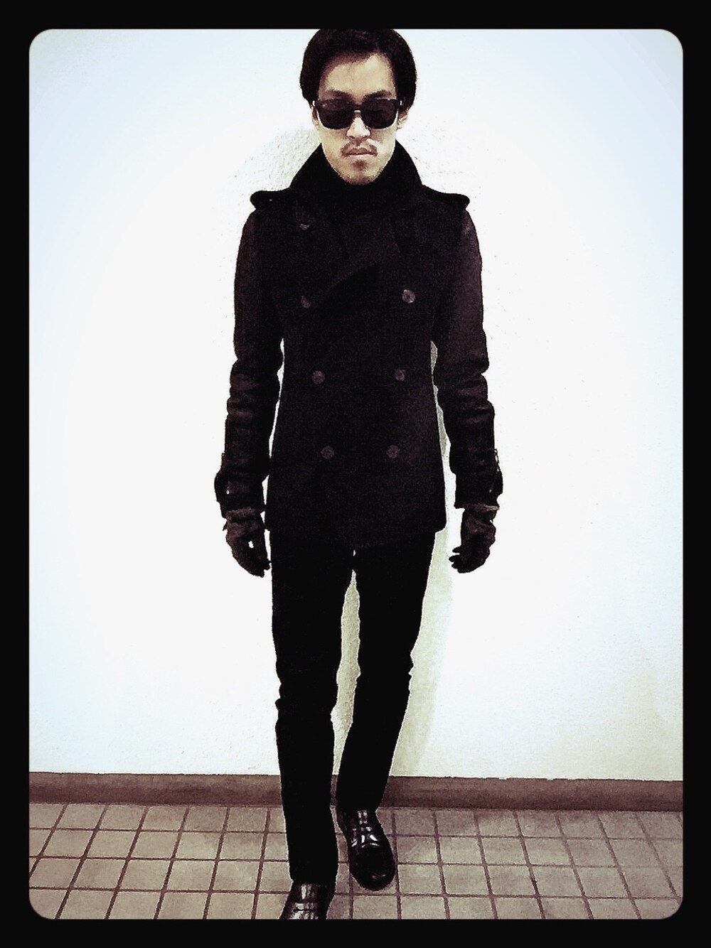 モードっぽくキレイに全身真っ黒! インナーのタートルも真っ黒 手袋も真っ黒 サングラスも真っ黒 ローファーも真っ黒 ピーコートも真っ黒 白黒つけ太郎のほんまに白黒つけたcoordinateです。 白は使っていない!!笑