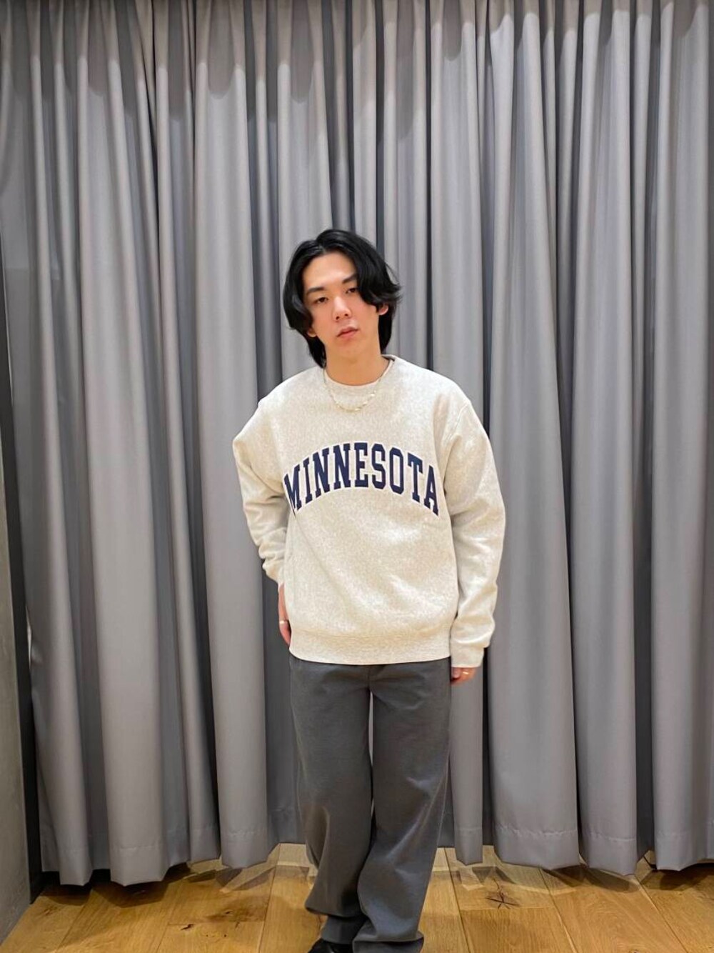 ミネソタのプリントが可愛いグレーとスウェットです。春におすすめのトップスです。
