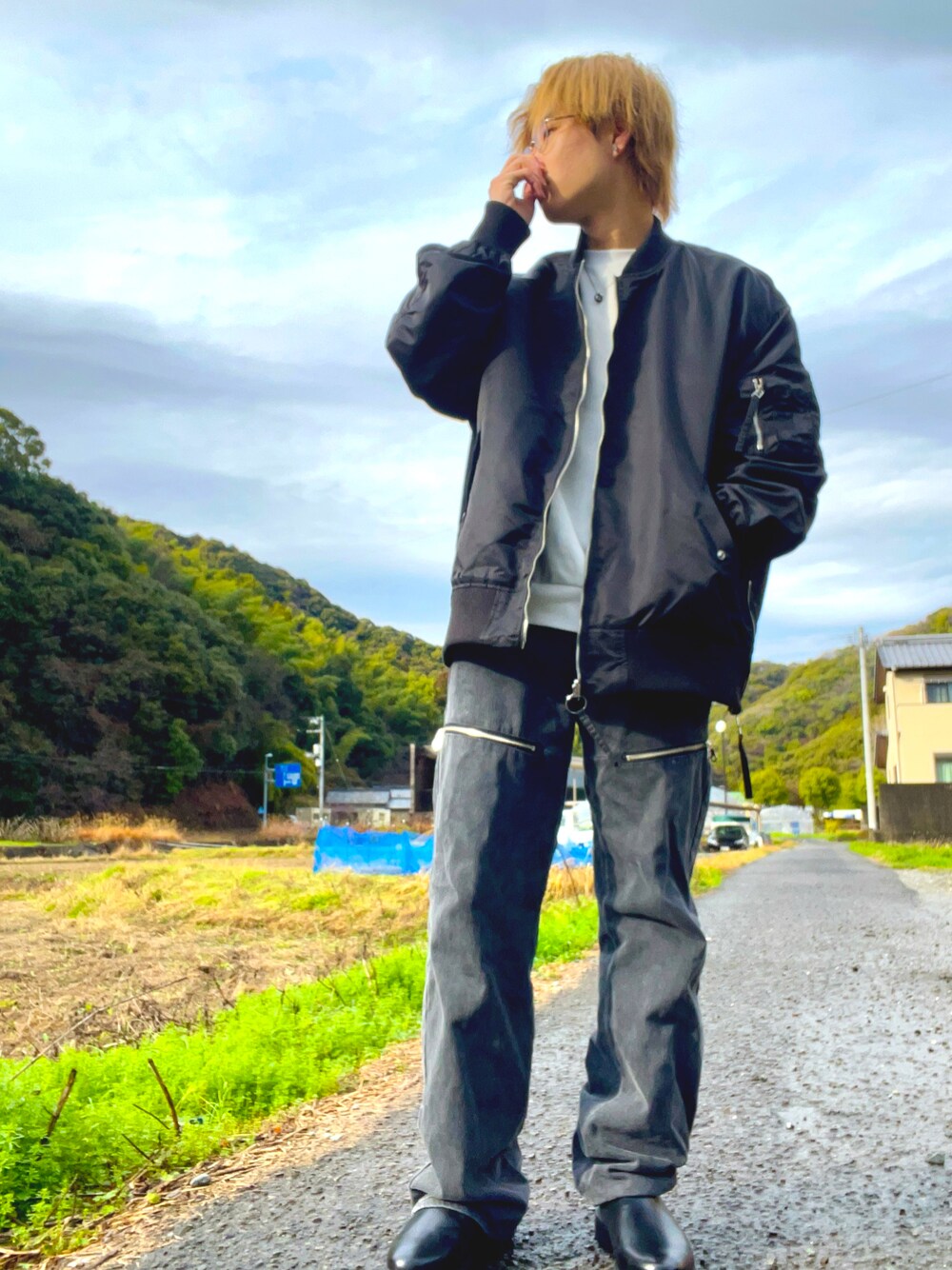 皆さん、お疲れさまです! 久しぶりの投稿になってしまいすみません💦 いつもいいね、saveありがとうございます🙇♂️ 本日はADRERのリバーシブルミリタリーMA-1ブルゾンを着用したコーデです✨️