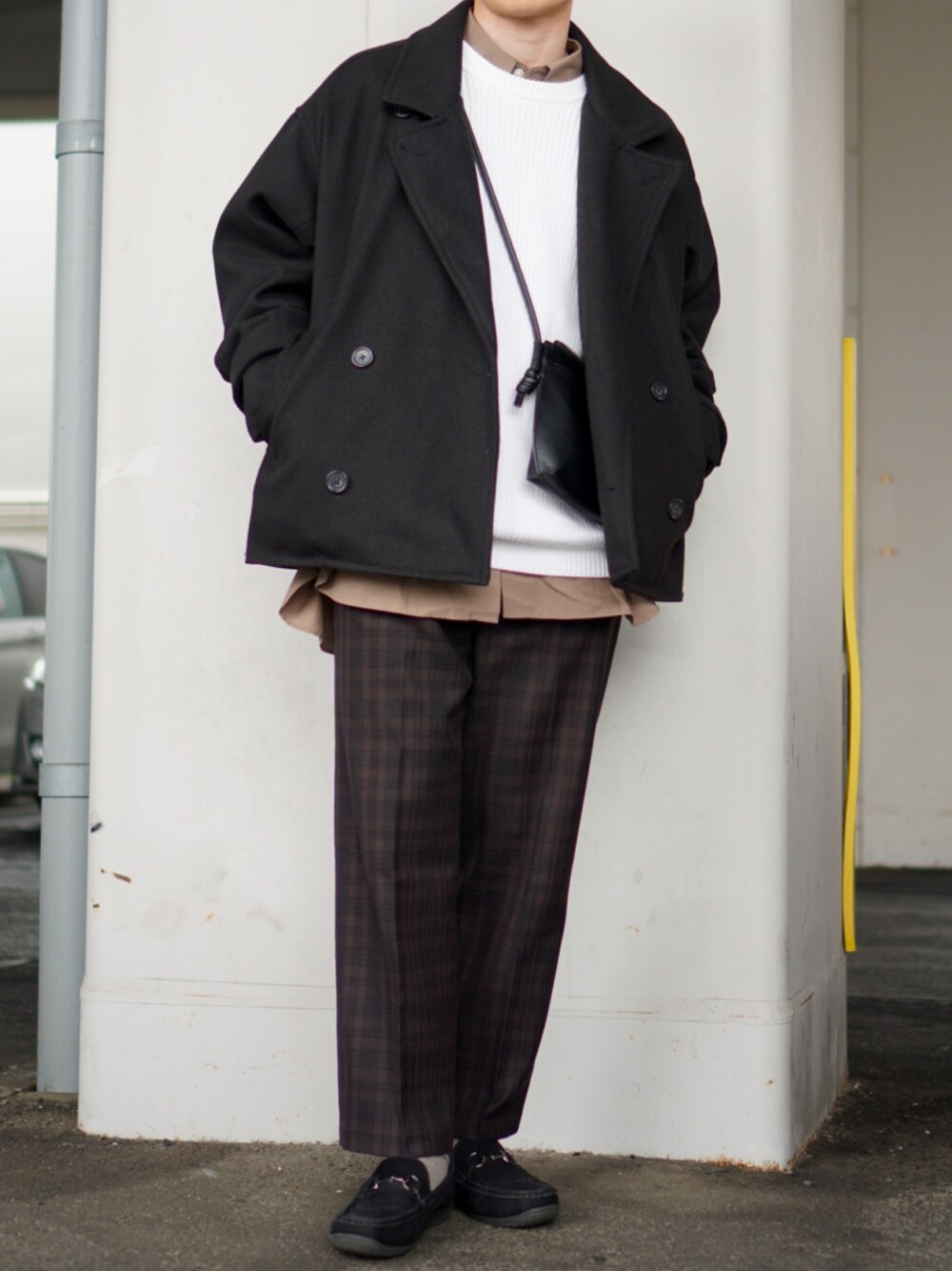 りょた のショルダーバッグ「【菅田将暉さん着用アイテム】フェイクレザーステッチミニショルダーバッグ」を使ったコーディネート