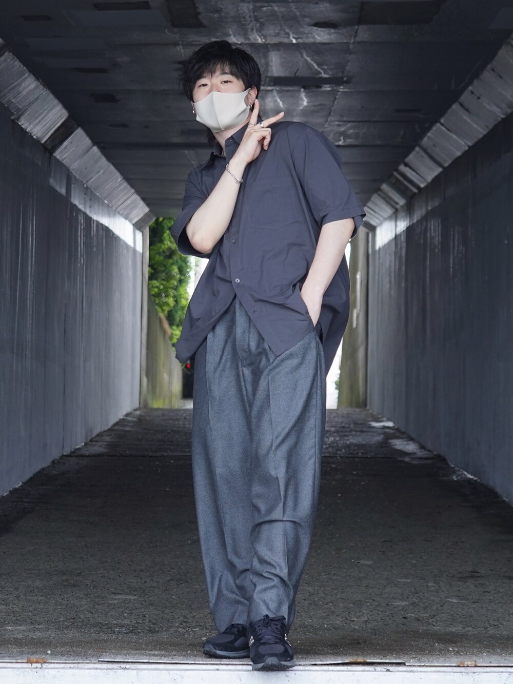 ダークグレーのワントーンコーデ . このlidnmのバギーパンツ最高です。。🙌🏻 そして、もう半袖着てしまいました笑