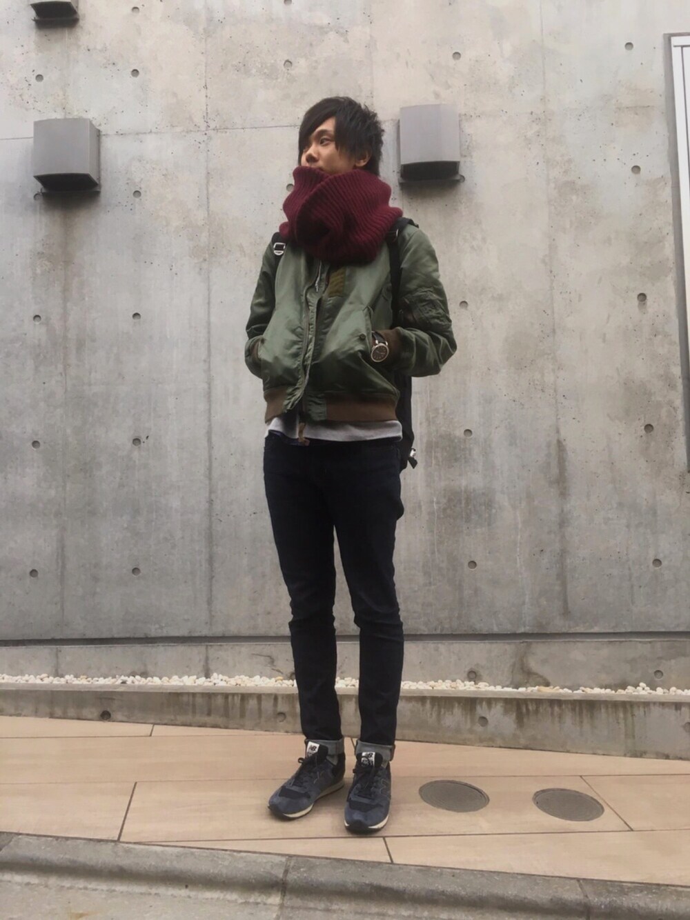 お気に入りのNB履いてお出かけ✨👟 歩きやすくて履き心地とても良き😋 <size> ・MA-1→M ・パーカー→L ・シャツ→M ・パンツ→28 ・靴→25.5㎝