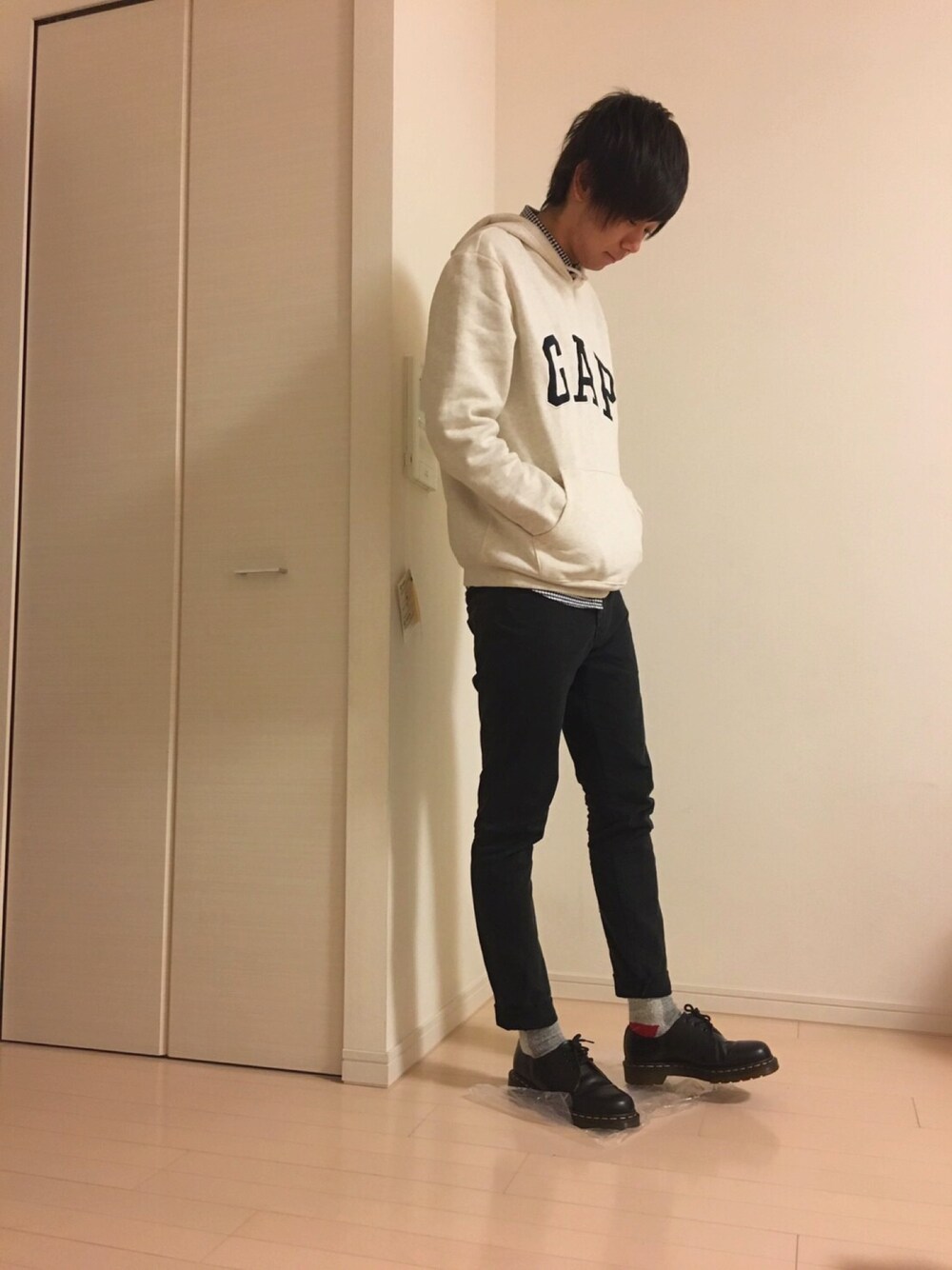 GAPのパーカー可愛くて最近このコーデばっかり😋 裏起毛で暖かさ抜群なのも良きです🤤 sizeも大きめ?に作られてるのでMでも結構ゆったりしている感じがまた良い感じ✨ <size> ・パーカー→M ・シャツ→M ・パンツ→30 ・靴→6