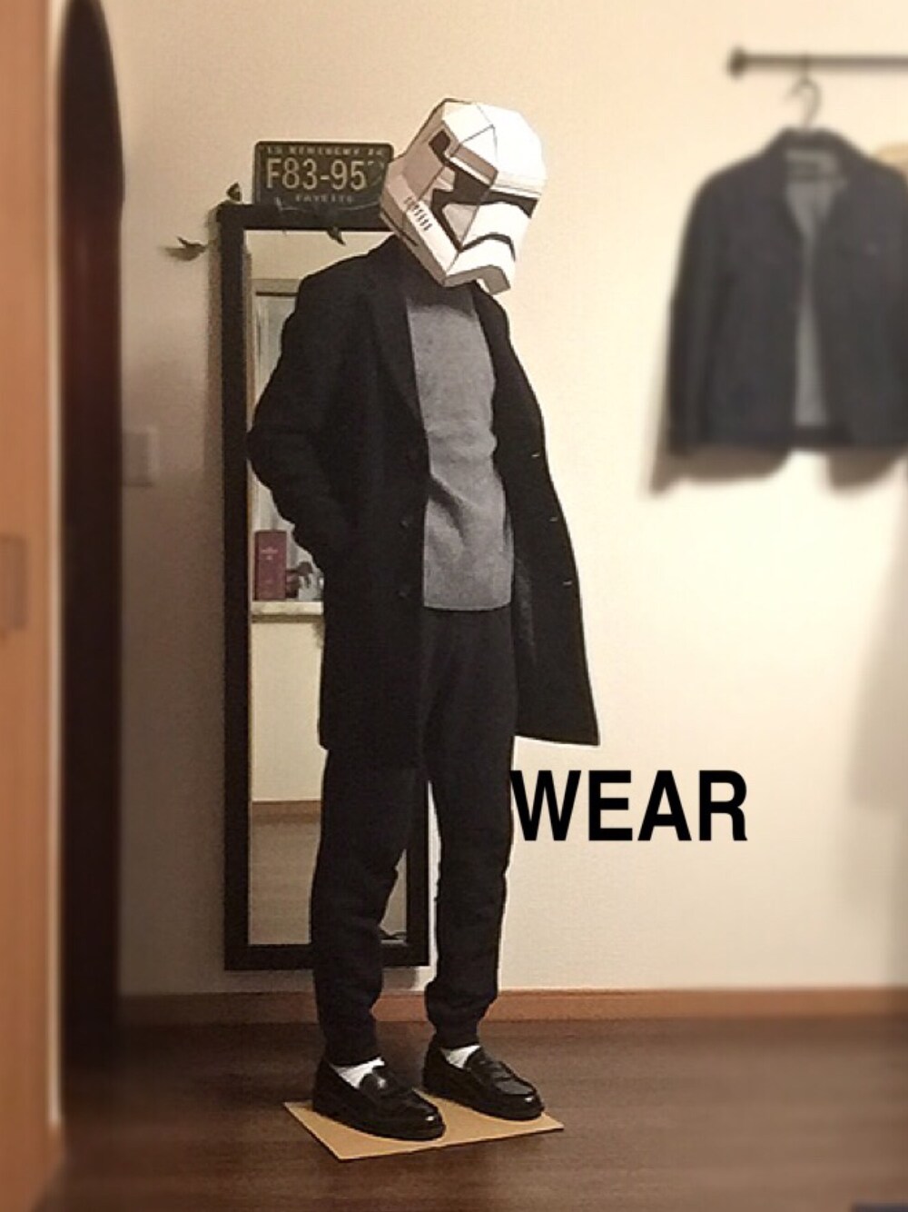 star warsブームにのっかりストームトルーパーになってみました!笑 そして、はやく新作を見に行きたい!🎥 先日購入した、journalstandardのコートにグレーのタートルニットを合わせました! このコートはすごく気に入っているのでヘビロテします!