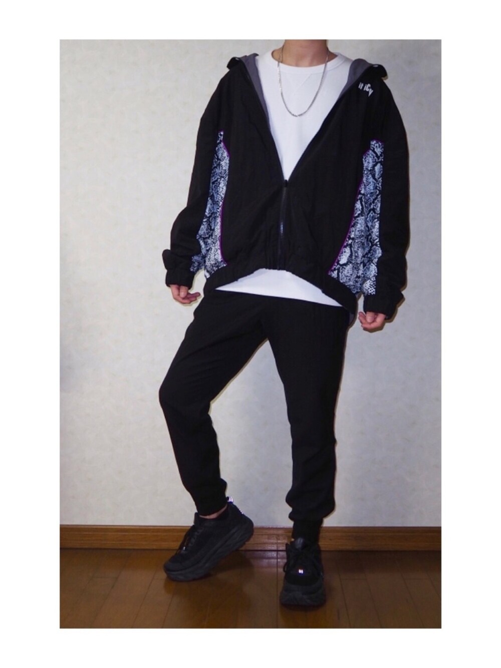 こんにちは! りょうはと申します! 今日はJUNRedのナイロンジャケットを使用した春コーデです! HOKAとトラックパンツにナイロンジャケットでスポーティなコーデにしてみました!