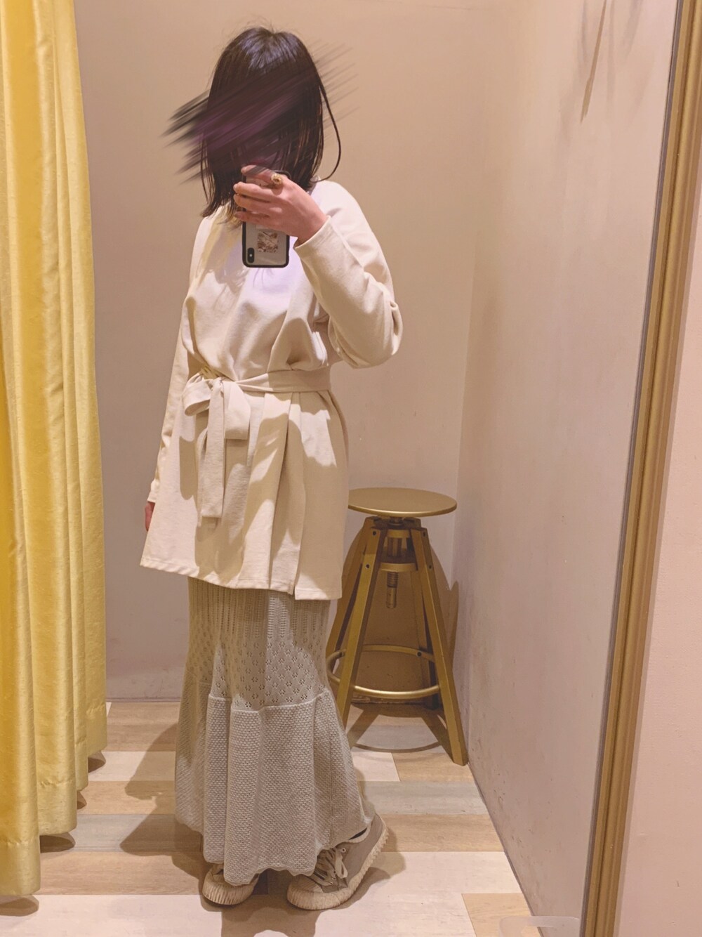 ご観覧ありがとうございます! 今回はニットスカートを取り入れたコーディネートです ベージュにカーキの組み合わせでアースカラーを! スカートはデザインの異なる透かし編みを組み合わせた、優しげな雰囲気が魅力のニットスカート。 ロング丈ですっきりした縦長ラインを強調します。ウエストゴムでストレスフリーな穿き心地。 リラックスタイムはもちろん、デイリー使いでも注目間違いなしのアイテムです。 スカート GreenParks ・SUGAR SPOON レースアミニットスカート