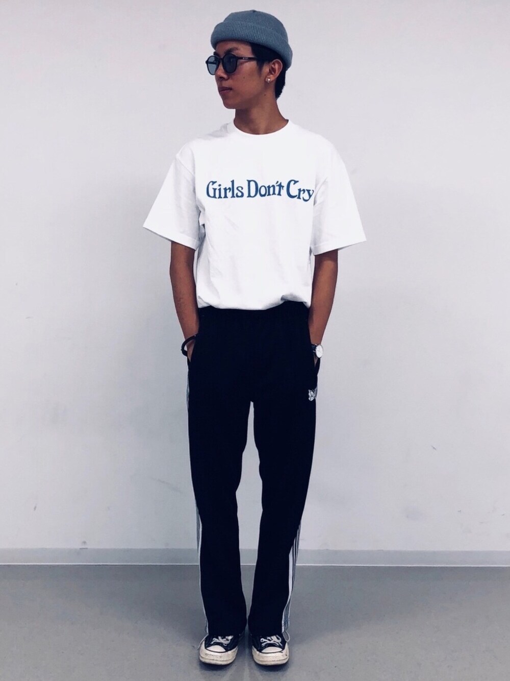 こんにちは🙌🏻 【theme】 ストリートカジュアル お気に入りのコーデです😎 最近は髪の毛を切ったからかビーニー被る率が高いです🤤 通販でやっと届いたGirlsDon'tClyのTシャツ最高です。 それでは。