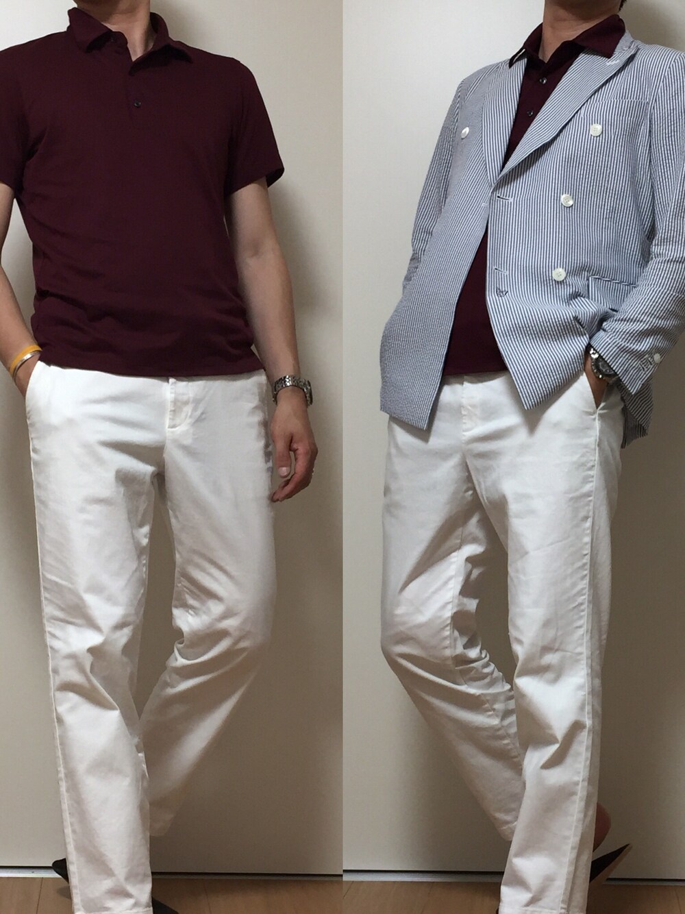 今日のコーデは、ユニポロコーデ②😊 、 、 ボルドーのポロシャツを着てみました😆✨ 、 、 日焼けした肌ならボルドーがオススメですね😉💙👏
