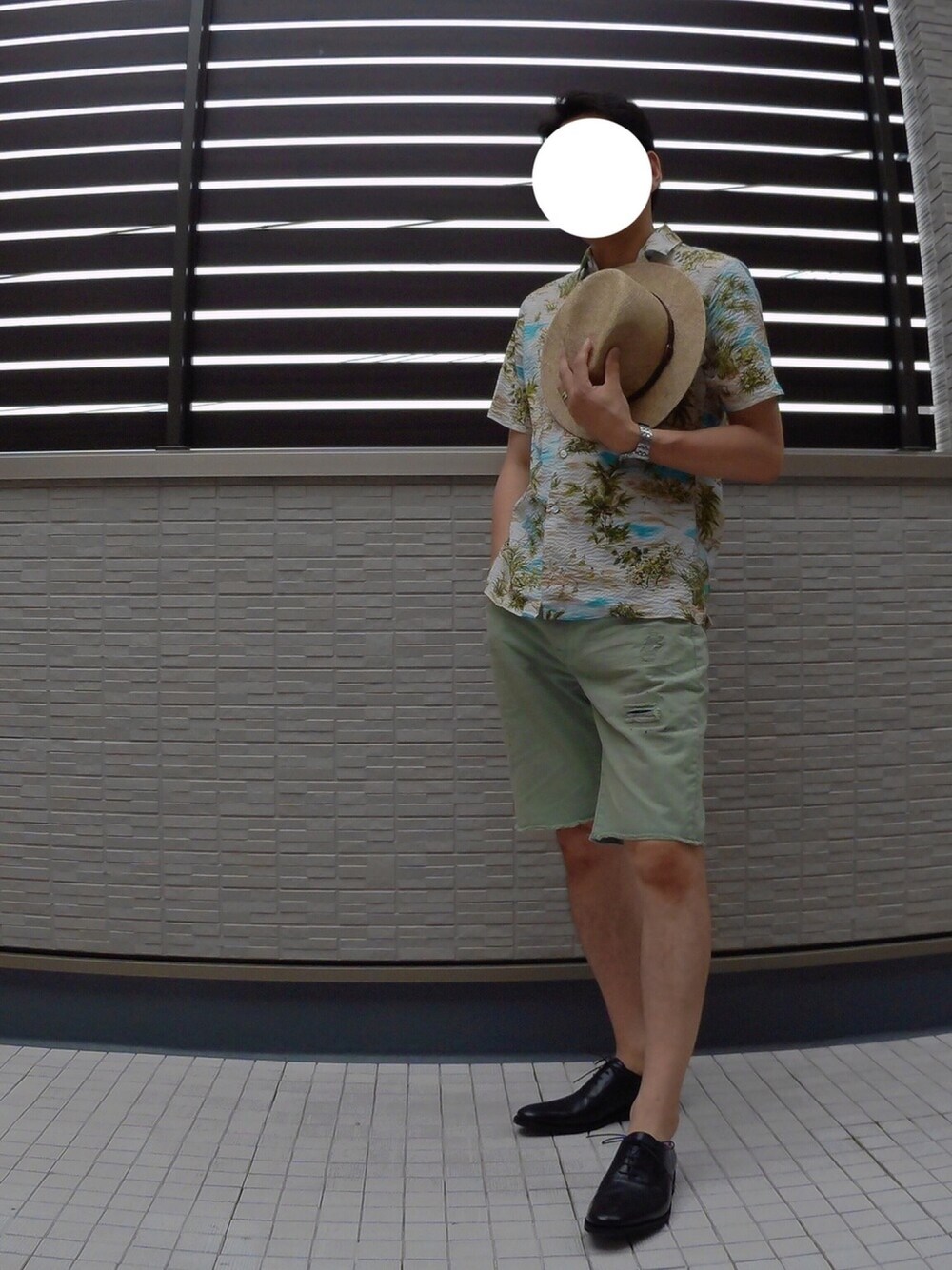 今日のコーデは夏っぽい感じで😆 、 アロハシャツに、 ダメージ加工のデニムのショーパンスタイル😁✨ 、 アロハシャツって、着るだけで夏っぽくなるよね。 、 梅雨明けたら本格的に夏コーデかな😉💙