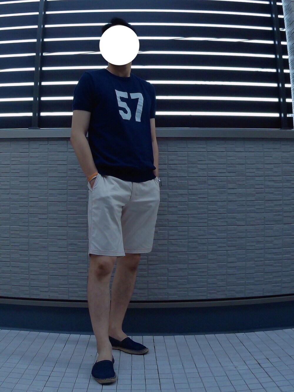 今日のコーデ😊 、 、 昨晩降った雨で朝は涼しかったので、 ニットTを着ました😉💙 、 しかし、ニットTだから暑いかなと思いきや、 昼過ぎでも快適でした🤣 、 ニットTって暑さの幅が難しい☠️