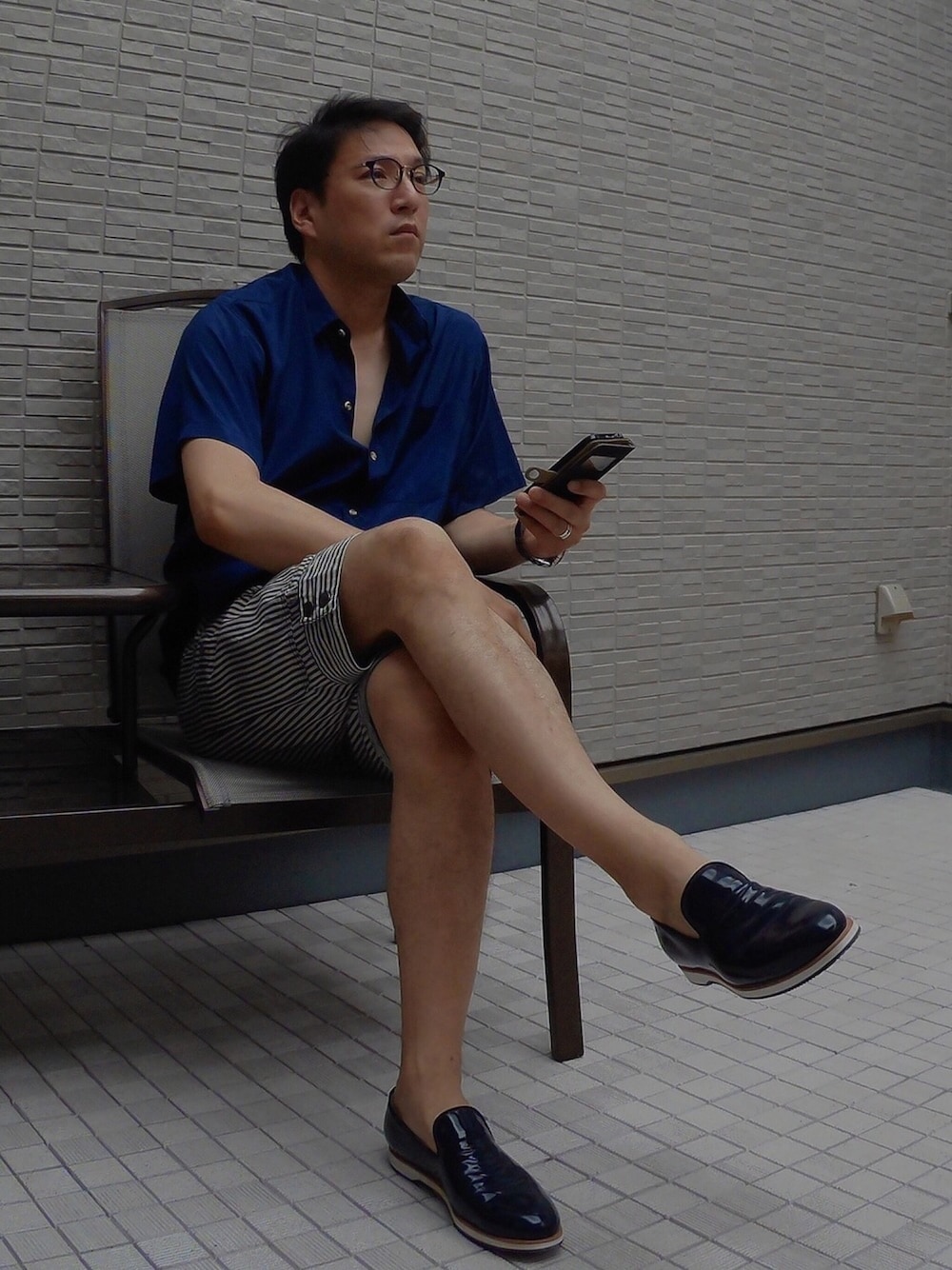 WEAR投稿は明日までとなります。 Instagramは引き続き投稿していますので、宜しければ覗いて下さい😉 、 今日のコーデ😊 、 ネイビーとブルーのストライプでまとめたコーデ。 、 何気にメガネもブルースモークデミで、 ブルーなんですね😚💙