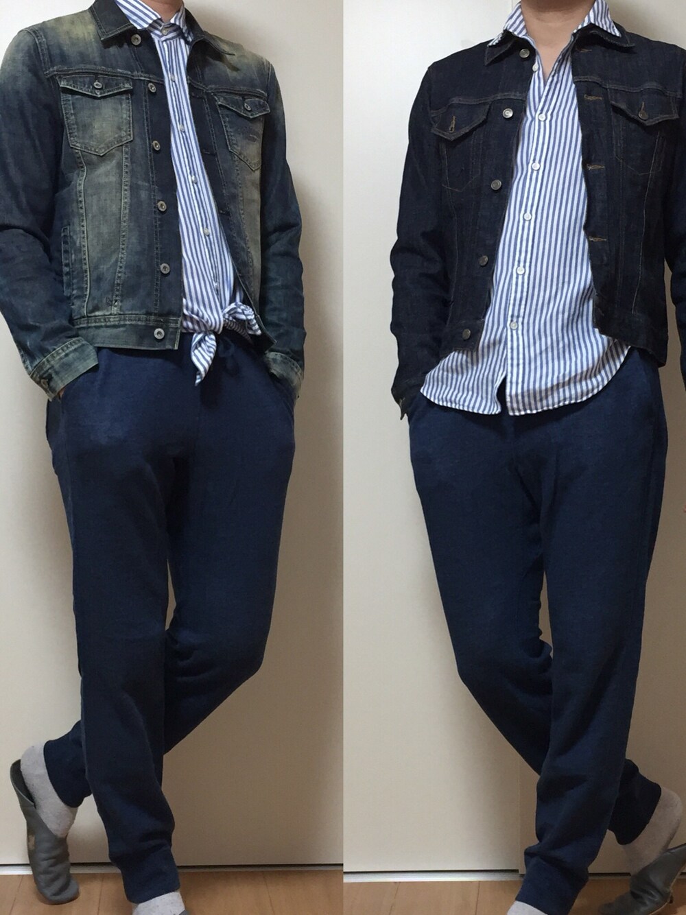 今日のコーデは、インディゴコーデ😊 、 ユニクロのインディゴカラーのスウェットパンツを使い、アウターにはインディゴの代名詞ジージャンを😆 、 今日は雨でも、足取り軽く行きたいですね😉✨
