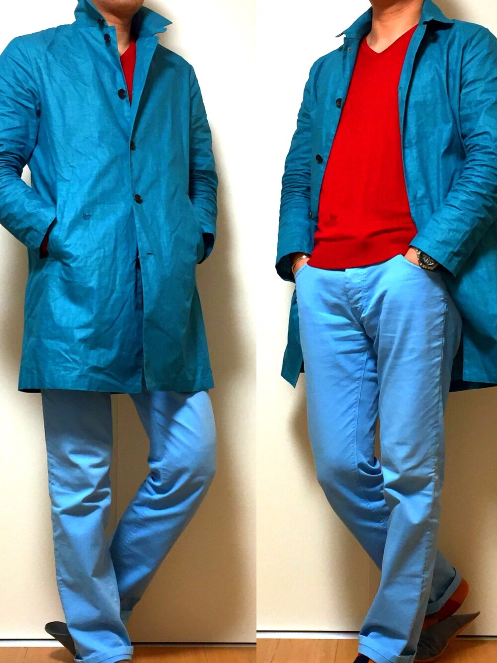 今日のコーデは、反対色コーデ😁 、 、 ブルーがレッドを引き立てて、レッドがブルーを引き立てます😊 、 春コーデらしく立て襟でいきましょ😘✨