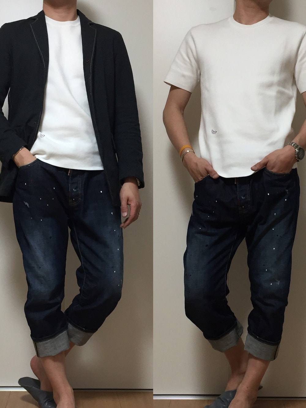今日のコーデは、春ニットコーデ😊 、 、 UNIQLOのミラノリブニットをざっくり着て、 クロップトジーンズで見た目マリンルックに🐬 、 朝はまだ半袖では冷えるので、 ジャケットを合わせてニットのざっくり感を抑えました😁✨