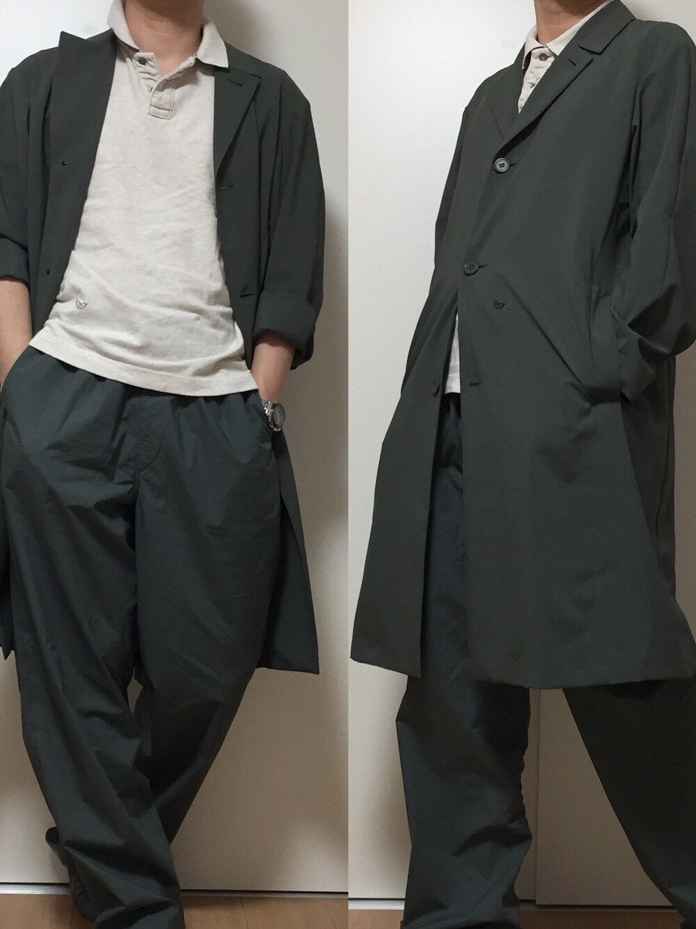 今日のコーデは、ユニクロコーデ😆 、 、 オールユニクロですが、 シャカシャカのコートやボトムスはとてもエアリーで気持ち良い☺️💚 、 風を受けて形が綺麗に見えるっていいよね👍