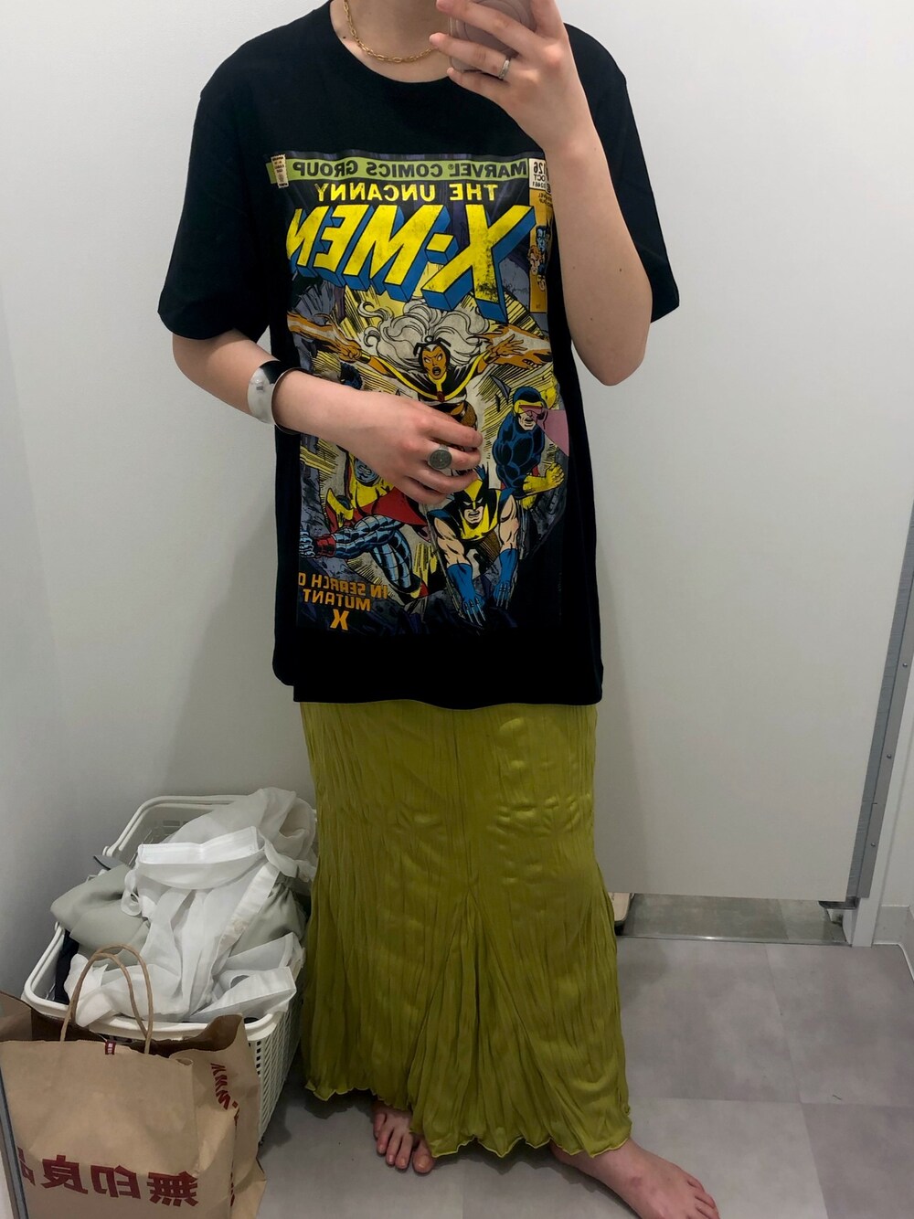 こちら、試着室での一枚🤫 可愛すぎてこのTシャツ即買い🤘 . 良いと思った方もしよろしければフォローしていただけると嬉しいです☺️