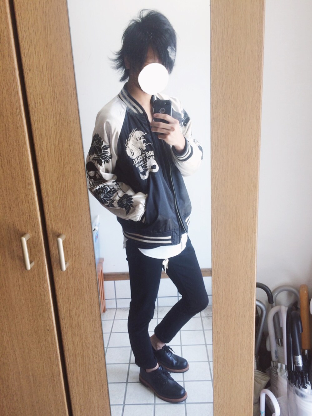 いつもいいね、セーブありがとうございます😋♪ スカジャンコーデ☠️ そろそろスカジャンも暑くなって着られなくなっちゃうから今のうちに💦 このスカジャンはDOG TOWNというところのモノらしいけど鑑定団で一目惚れして買いました😍♪ 腕まで刺繍が施されていて良き良き♪ 是非いいね、セーブお願いします! よかったらフォローもしてやってください🤗♪