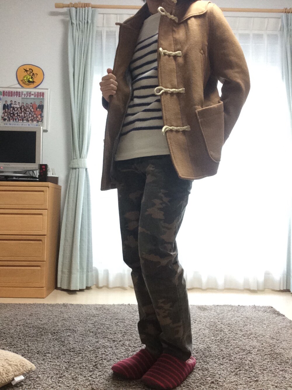 迷彩パンツはきたかったので それを中心にしたコーデです^_^ ボーダーの下はデニムシャツ着てます