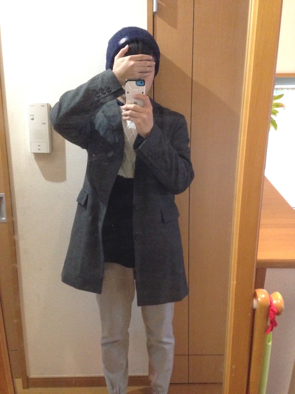 今日はグレーのジョガーパンツとネイビーのオックスフォードシャツに白黒の切り替えデザインのケーブルセーターとグレーのチェスターコートを合わせて、ジョガーパンツを使ったキレイめコーデにしました‼︎ さらにネイビーのニット帽を合わせて、 モノトーン+ネイビーの爽やかでスポー ティな印象になるようにしました‼︎