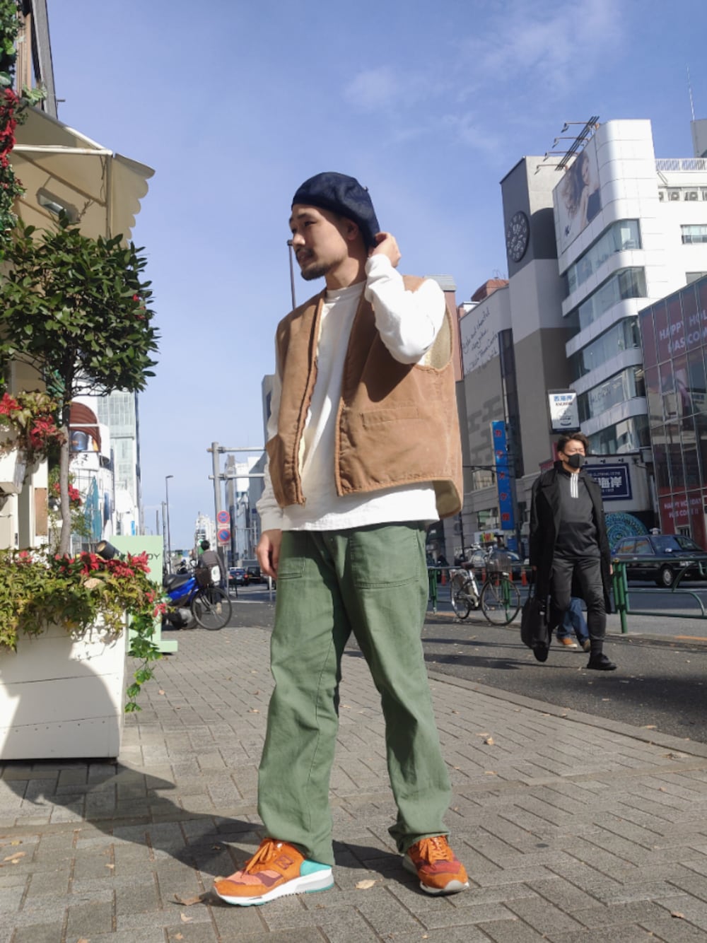 こんにちは、 今回はデニムベレーを被ってみました。 着用アイテム↓ OVERRIDE デニムベレー Carhartt 70'sベスト GUNG HO ベイカーパンツ NEW BALANCE 1500