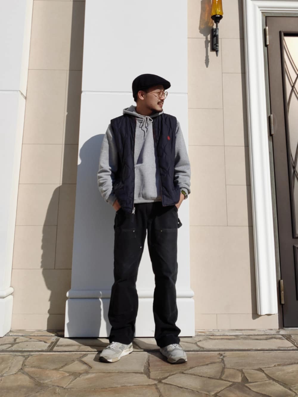 こんにちは もう、年末です。 1年が年々早くなってきました。 帽子 KANGOL ウール504 ベスト NAUTICA リバーシブルベスト パーカー SOFFE パンツ Carhartt ペインター 靴 NEW BALANCE 998