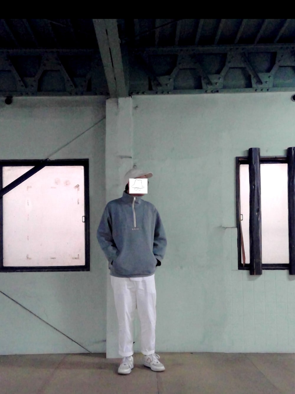 90sスポーツっぽい雰囲気です。 色味は寒色でまとめてスタイリッシュに。