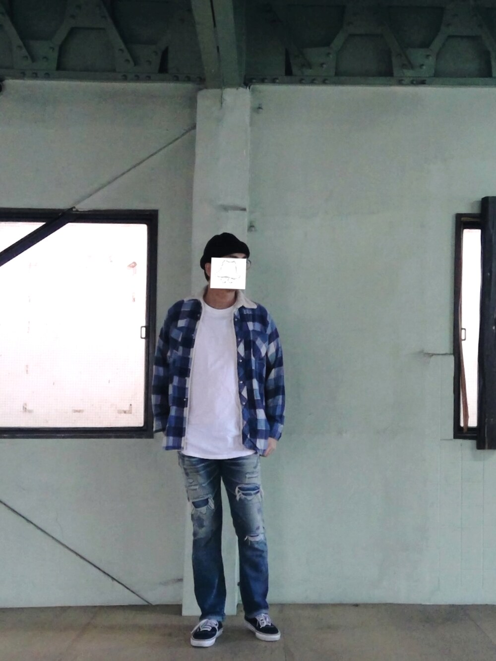 ネルチェックシャツに、ダメージデニムを合わせてグランジな気分でした。 寒くなってから、逆に寒色系でまとめがち。