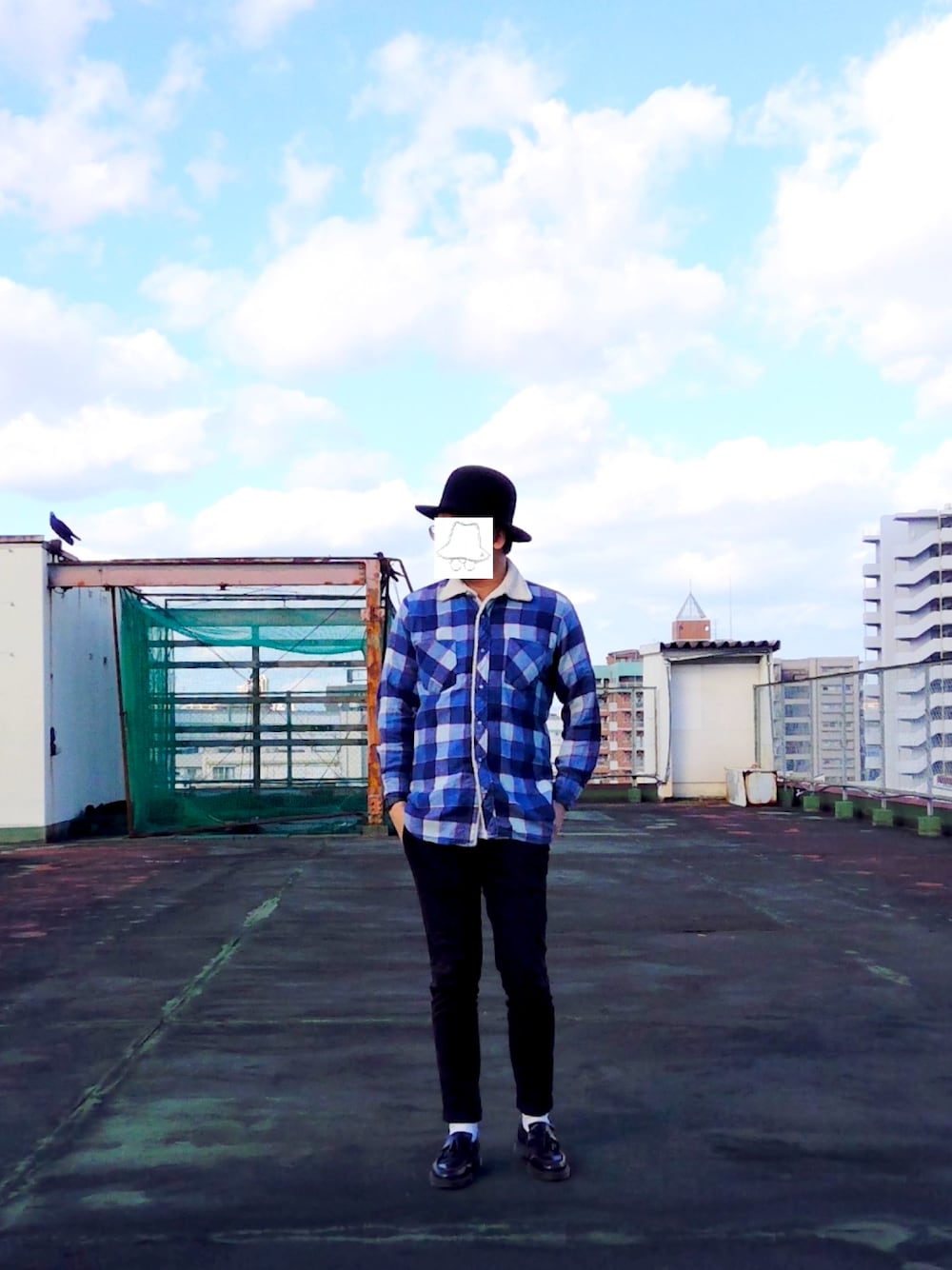 ボア付きのチェックシャツをキレイ目に着ました。 何となくブリティッシュなイメージです。