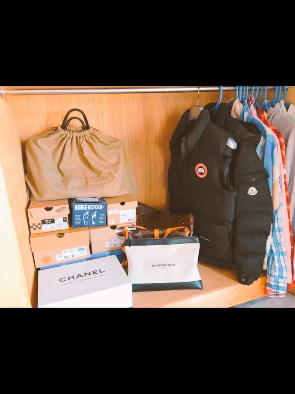 断捨離後 部屋のクローゼットは狭いから物は少なめに… だんだん冬に…⛄ UGGやMONCLERが着れるから冬は好きです\( ¨̮ )/