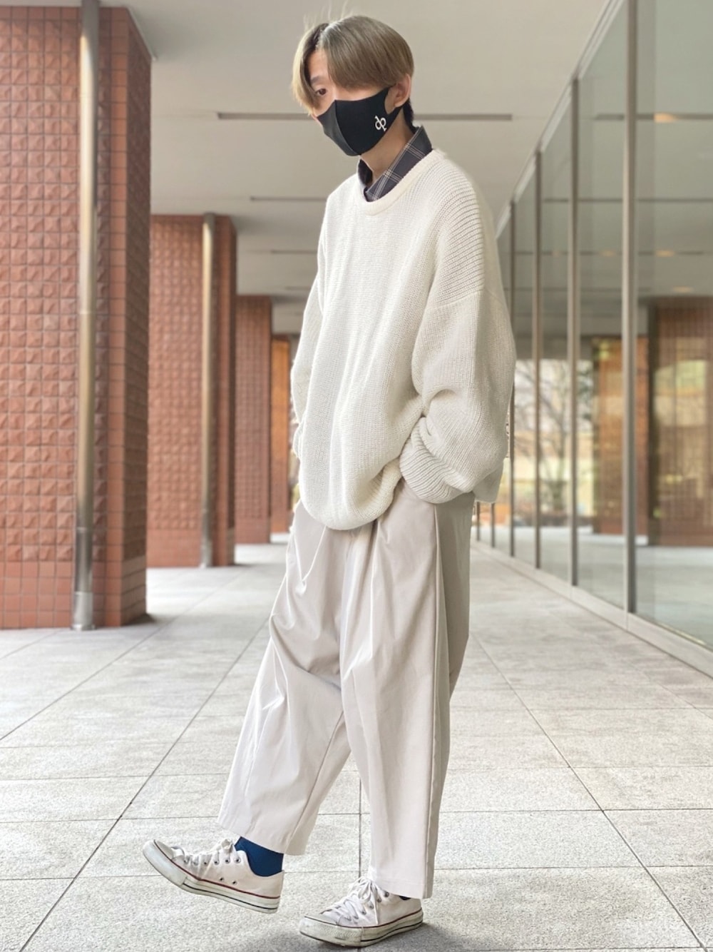 お疲れ様です。うのです。 いつも、いいね👍 セーブ📁 フォロー+👤 ありがとうございます! 今後もよろしくお願いします🙇♂️ ホワイトワントーンコーデ。 差し色でネイビーを使いました。 早くニットだけで過ごせる気温に なって欲しい…。