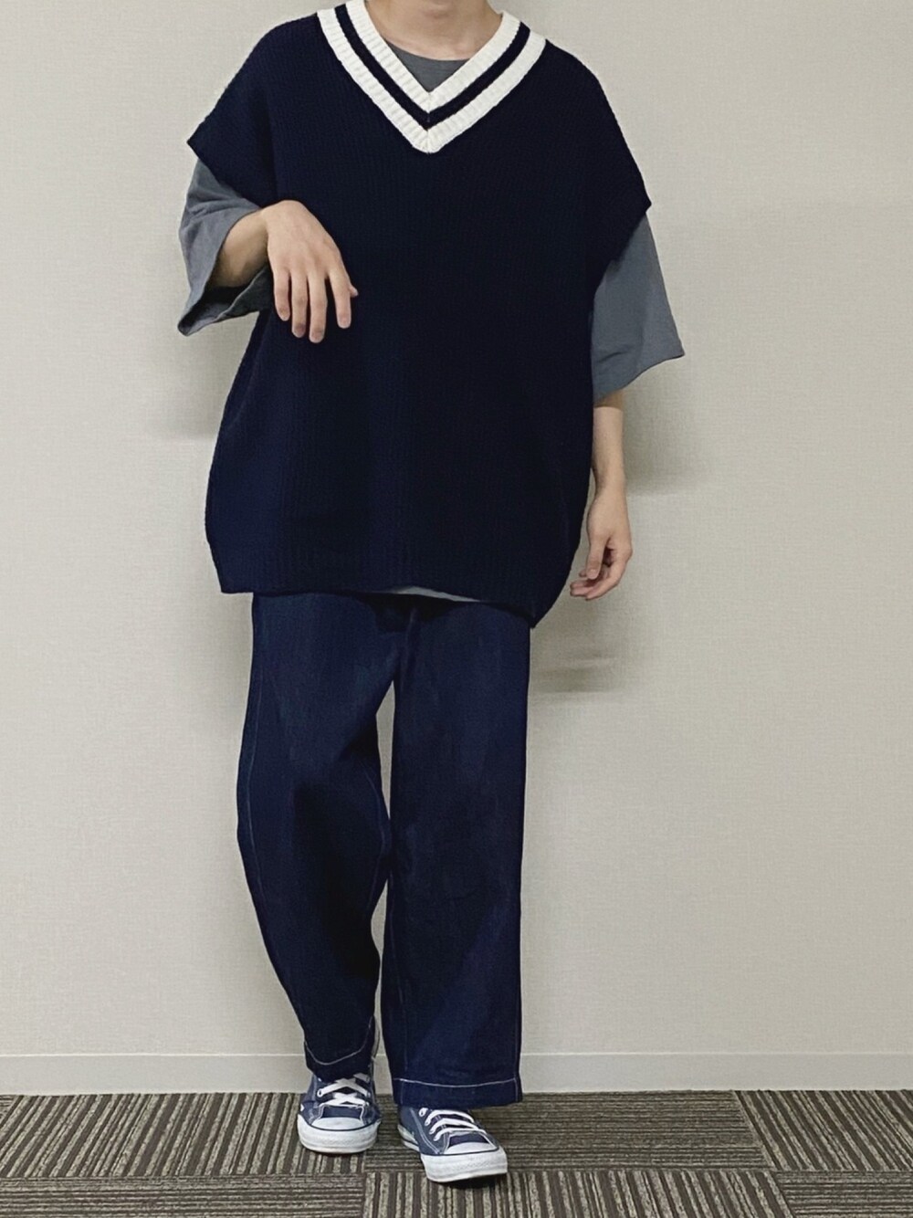 お疲れ様です。うのです。 久々にデニム履いたかも。 ニットベストとデニムは 自分の中でとても新鮮というか いい意味で違和感?笑