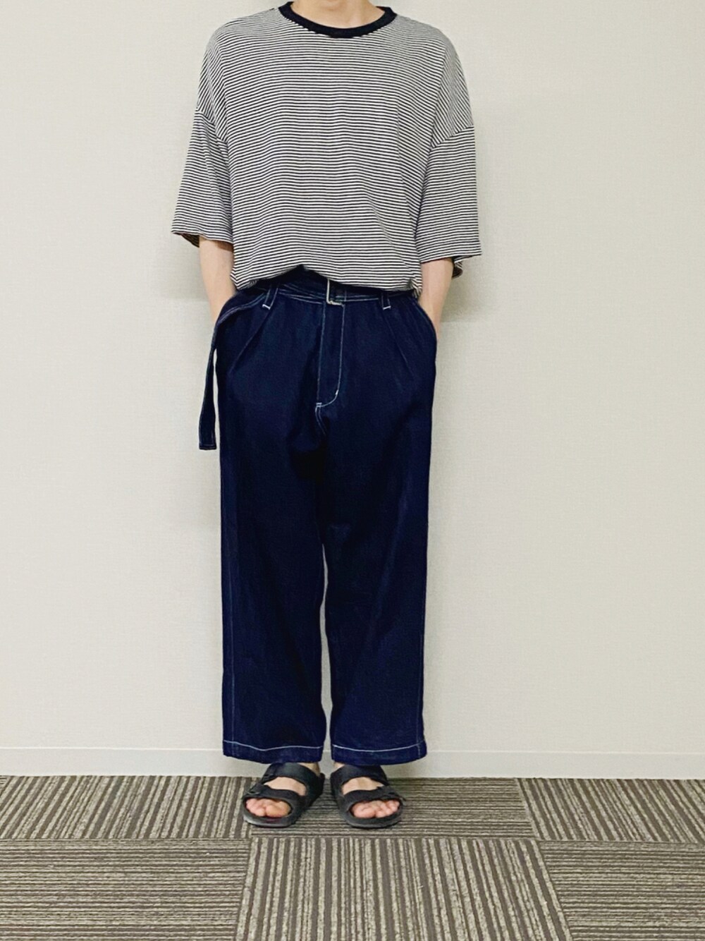 UNOのTシャツ/カットソー「loose basic border Tee/ルーズベーシックボーダーTee」を使ったコーディネート