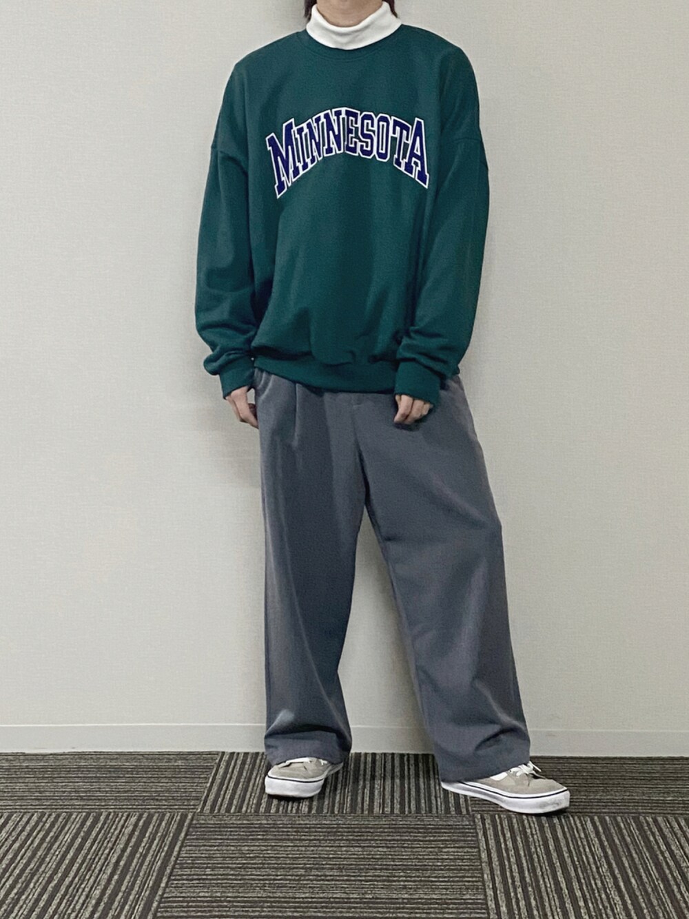 お疲れさまです。うのです。 カレッジスウェット×タートルネック 可愛いの極みですねこれは。