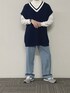 UNOのベスト「ビッグシルエット ニットベスト」を使ったコーディネート