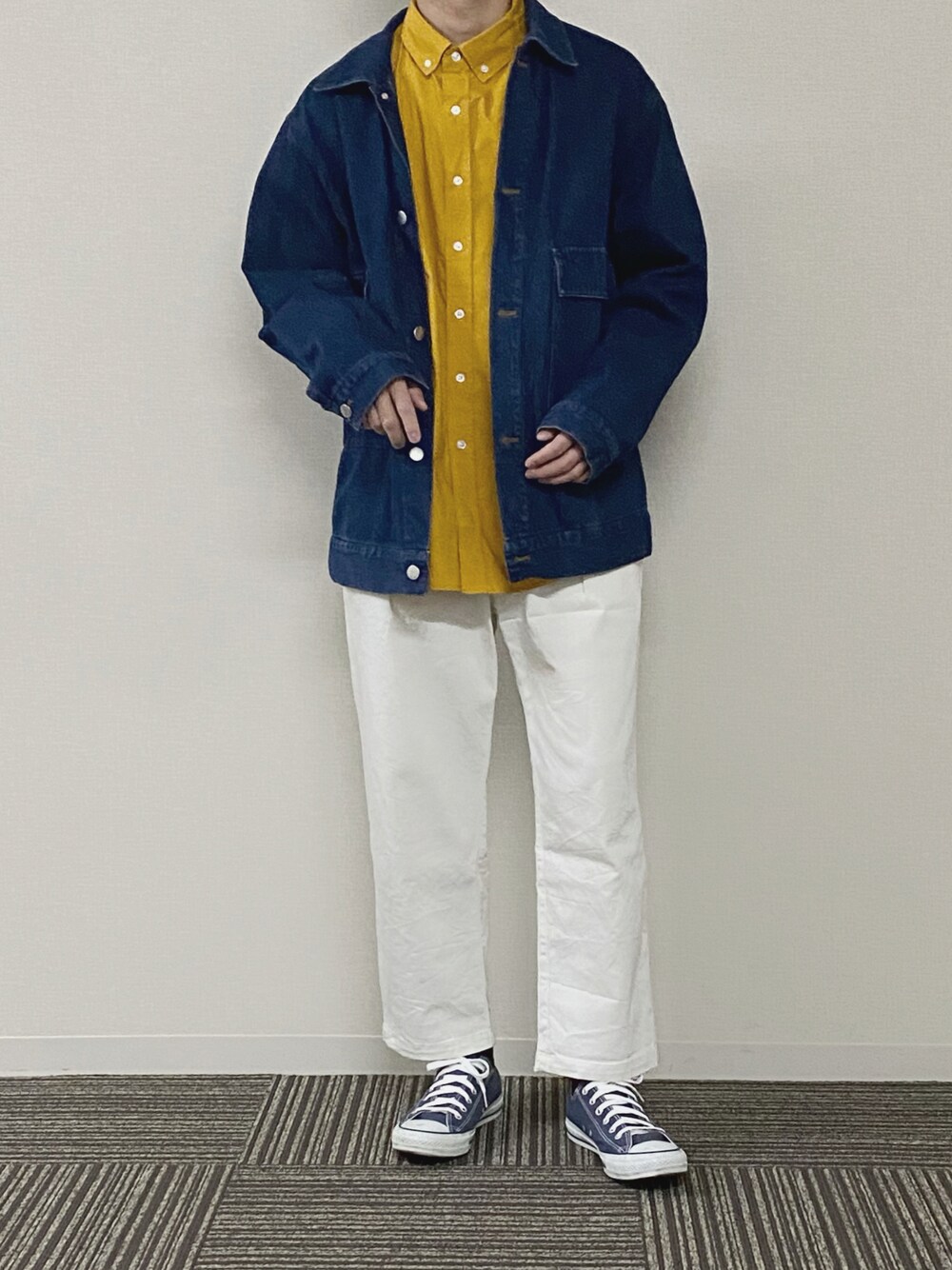 お疲れ様です。うのです。 いつもご覧頂き誠にありがとうございます🙇♂️ 本日のコーデは、 【カラーシャツコーデ】です! デニムの深い青とシャツの黄色 そして白パンツで春っぽさが眩しい。 統一感重視のコーデなので 大人っぽくなったかな? ︎︎︎︎☑︎Instagramも投稿しております! よかったらそちらも見に行ってね👍 いいね👍フォロー+👤 よろしくお願いします💪